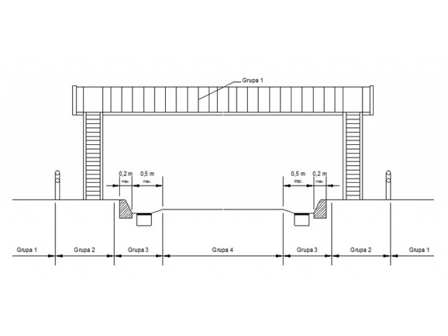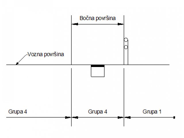 Tipičan presjek jedne pomoćne prometne trake sa rasporedom pojedinih grupa prema mjestima ugradnje